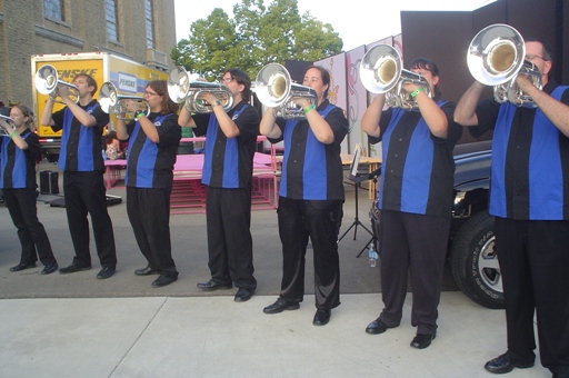 Minne Brass Minicorps of MBI, 2006 Madison DCI Championships. Sue Cosley, 2nd from right; Cynthia Hoines Tischhauser, 3rd from right. (Photo by Cozy Baker)