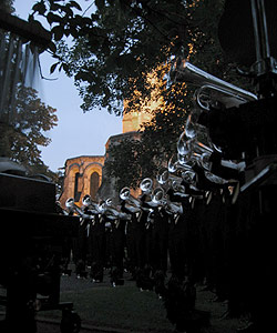 In closing, the corps came together one last time to play "Time to Say Goodbye" and the GLASSMEN corps song, "Madre" in a combined concert that ended with shouts of "Bravo!" and "Encore!" – but as it was 11 p.m., and darkness had descended over the city, it was time to say goodnight and au revoir – merci and félicitations!