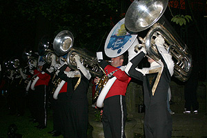 But all in all, Monday was as normal as any, as the GLASSMEN continued to work on and tweak parts of the 2006 field production, Mastery and Madness. The show is really coming together amazingly well, and with the help of constant cheering local fans and friends, performance levels are shooting through the roof! Even as the local group was cleaning up parts of the stadium after the show, they still whooped and hollered for the corps during their run through in the afternoon.