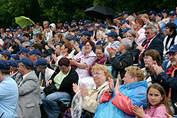 Finally, two hours later, the GLASSMEN busses were spotted in the distance, and everything was thrown into high gear to get the corps onto the field for the show. Unfortunately, as it had been very wet and resultantly muddy on the field, they opted not to do a marching show, but played a top-notch standstill concert that not only included the 2006 production, "Mastery and Madness" – but a full half hour of tunes that kept the Saint Quentin crowd on their feet yelling for more!