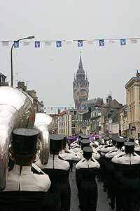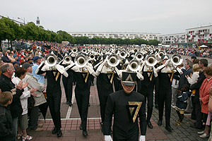 There were a wide variety of groups from all over the world participating: Russia, Peru, Slovakia, Brazil, Paraguay, China, England, and France. But the best part of the parade was that the corps had the opportunity in the middle of the route to stop and play a full concert at the "Place d’Armes", in front of the grandstands, which included the mayor of Calais. The crowd was utterly enthusiastic – clapping and chanting and cheering for the GLASSMEN! (The corps was just as excited to play for them as well!)