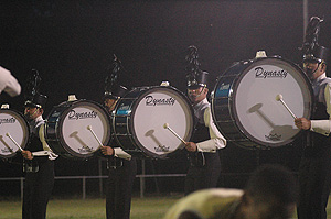 The drumline at the ready before the show. (photo: Hans Kloppert)